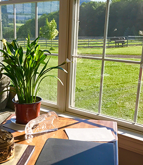 I add a well-designed chair to save my back, a desk set at just the right height to save my wrists from carpel tunnel syndrome, and surround myself with lot of bookshelves that house all the books I love. I do confess that many titles will still end up strewn over the coffee table along with piles of paper scribbled with ideas and discarded pages. Even with the use of the modern version of typewriter from my friends at Apple, I still love to print what I write and read it through and edit it with by hand, so there is a printer handy and ready for action.